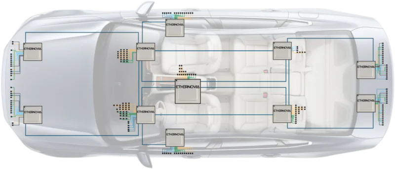 Ethernovia’s approach centers on packet processor–driven, Ethernet-based architectures that unify networking, compute, and data orchestration. Rather than relying on a patchwork of legacy buses and point-to-point links, its platform is built to aggregate and route real-time data streams in a programmable and scalable way—supporting both zonal and centralized system designs.