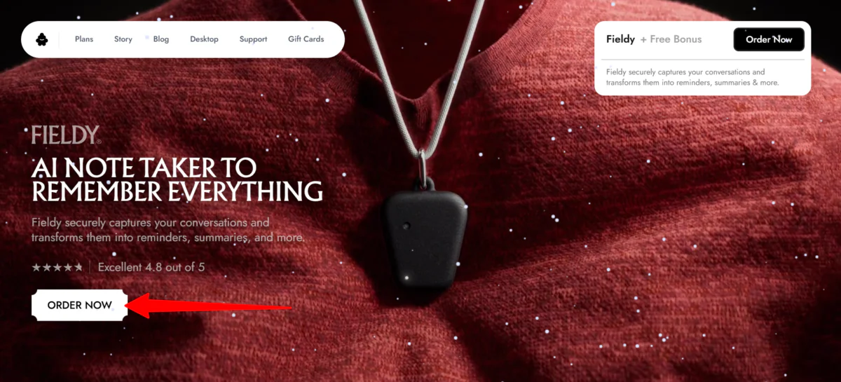 Fieldy є носимим AI конспектування пристрій, який висить на шиї та фіксує розмови, ідеї та важливі моменти протягом дня. Це як наявність помічника який ніколи не забуває нічого з того, що ти кажеш.